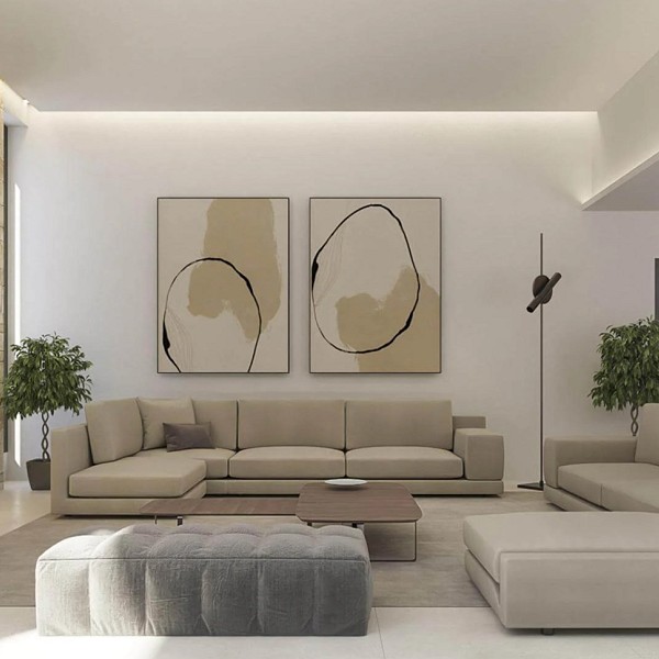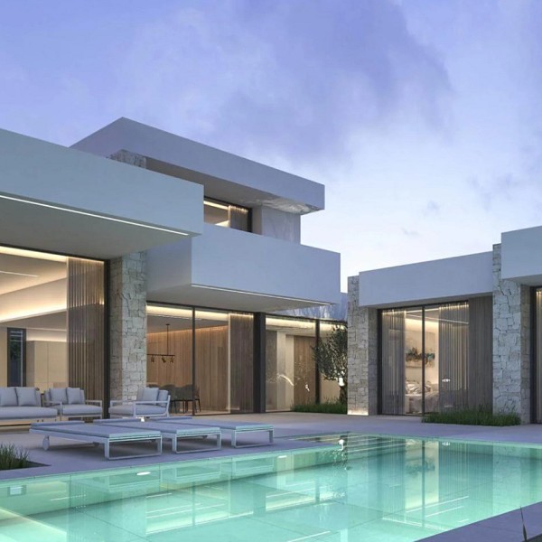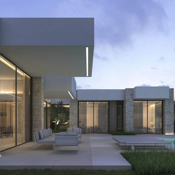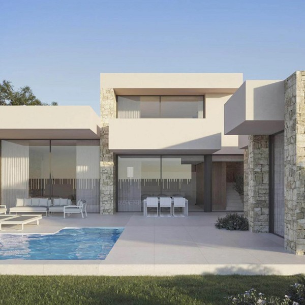 Each villa in the Luxury Village Dénia complex has been conceived as a singular piece, where the purity of lines, the spaciousness of windows, and the selection of noble materials—large format porcelain, Santos-designed kitchens, Porcelanosa fittings, and high-efficiency carpentry—ensure the highest quality residential experience.