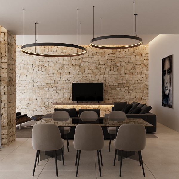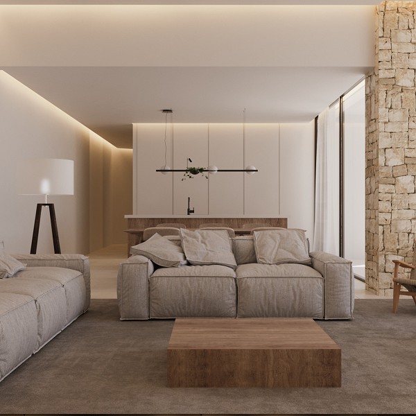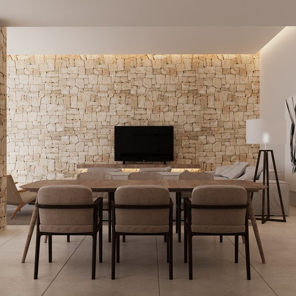 The exterior has been designed to make the most of the Mediterranean climate. A private pool of 36 m², spacious sun terraces, and covered porch areas provide different settings for relaxation and outdoor social life. The natural stone walls, native vegetation, and sunny orientation reinforce the Mediterranean essence of the complex, adding character and authenticity to the environment.
